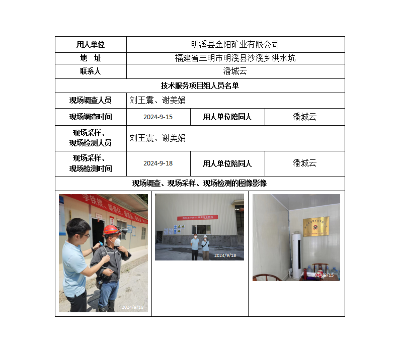 明溪縣金陽(yáng)礦業(yè)有限公司-2024年工作場(chǎng)所職業(yè)病危害因素檢測(cè)