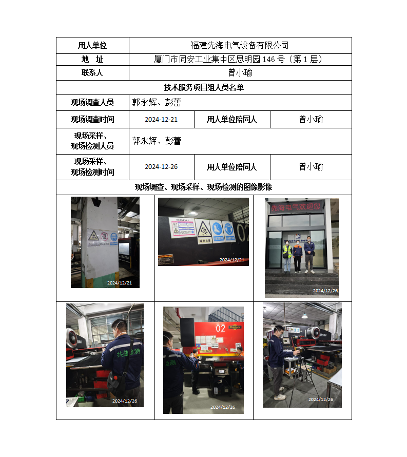 福建先海電氣設備有限公司-2024年工作場所職業(yè)病危害因素檢測