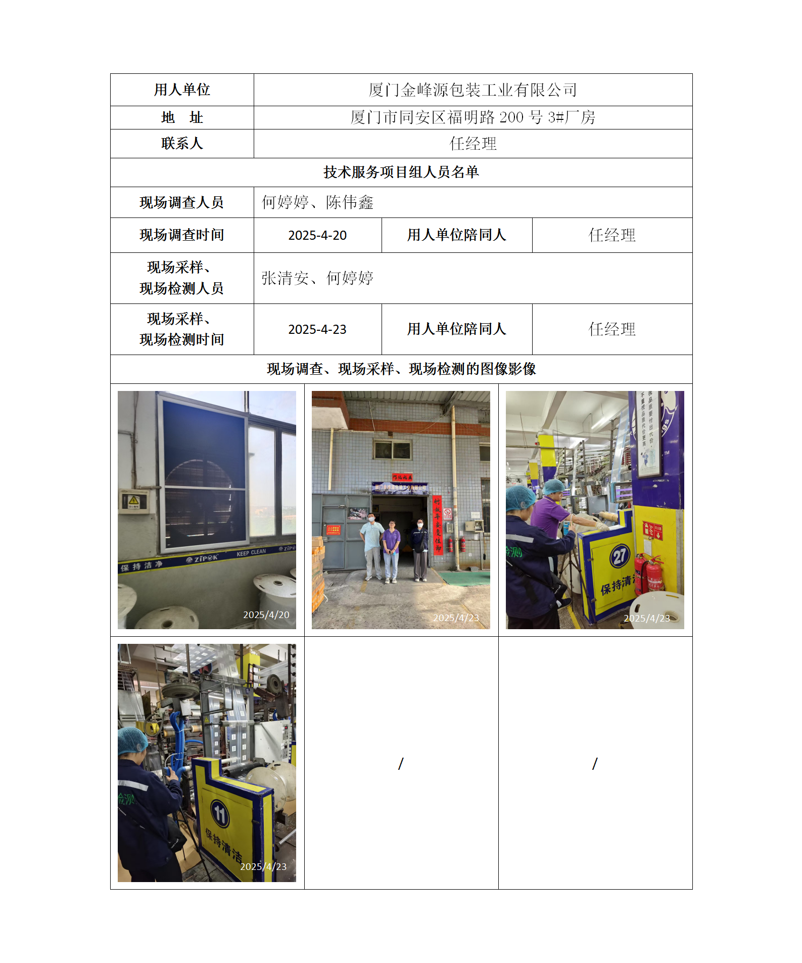 廈門金峰源包裝工業(yè)有限公司-2025年工作場(chǎng)所職業(yè)病危害因素檢測(cè)