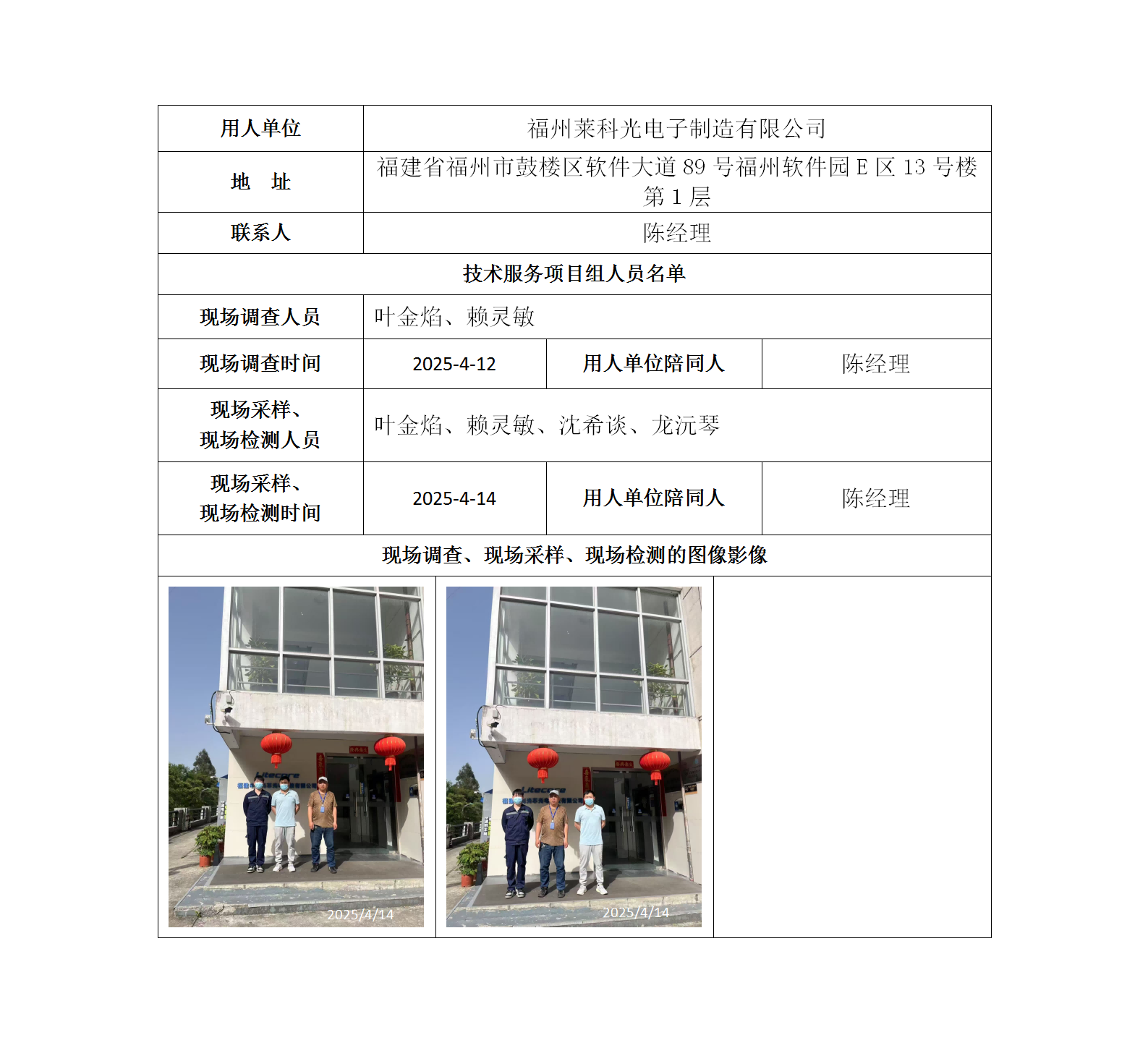 福州萊科光電子制造有限公司-2025年工作場(chǎng)所職業(yè)病危害因素檢測(cè)