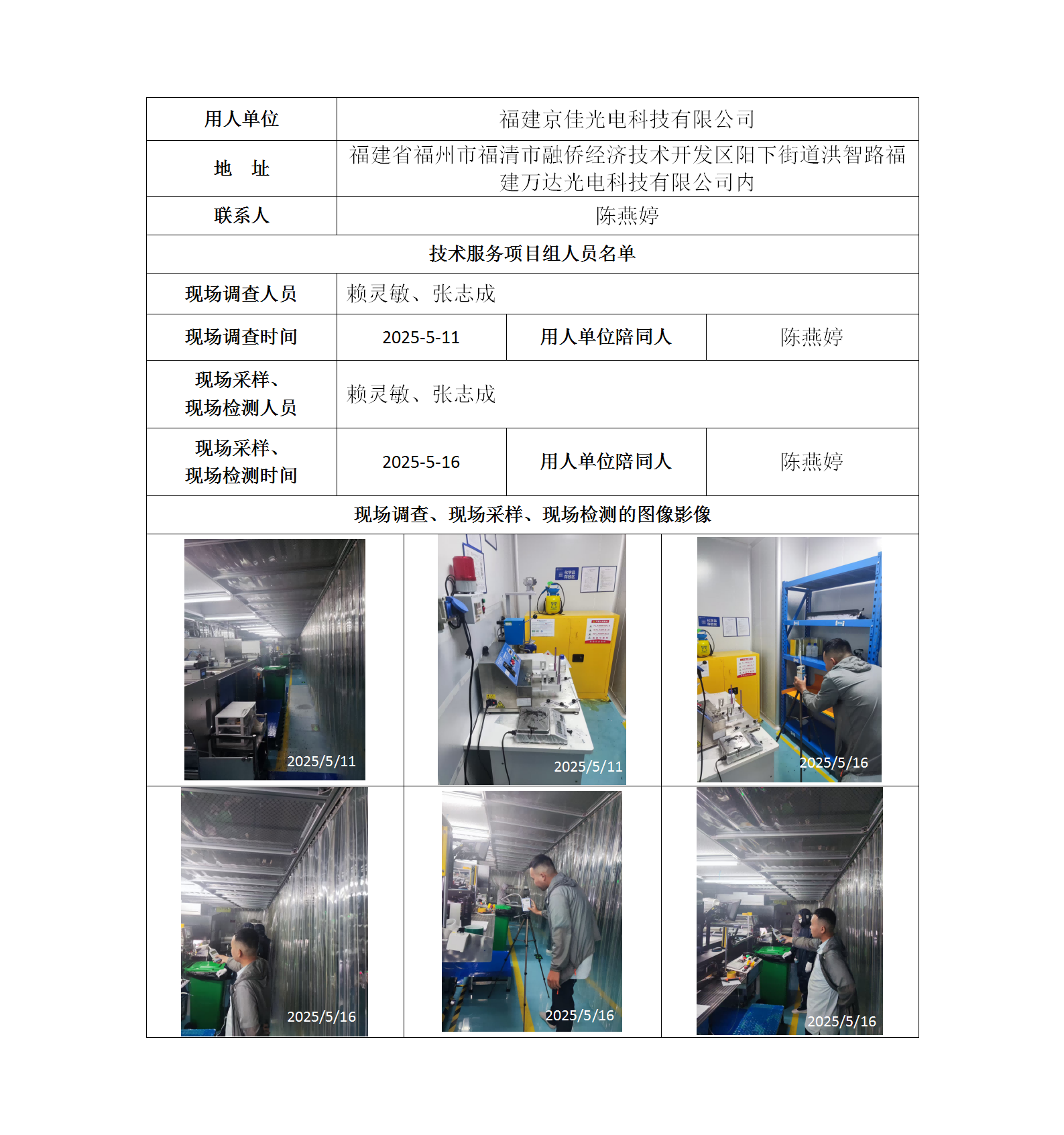 福建京佳光電科技有限公司-2025年工作場所職業(yè)病危害因素檢測