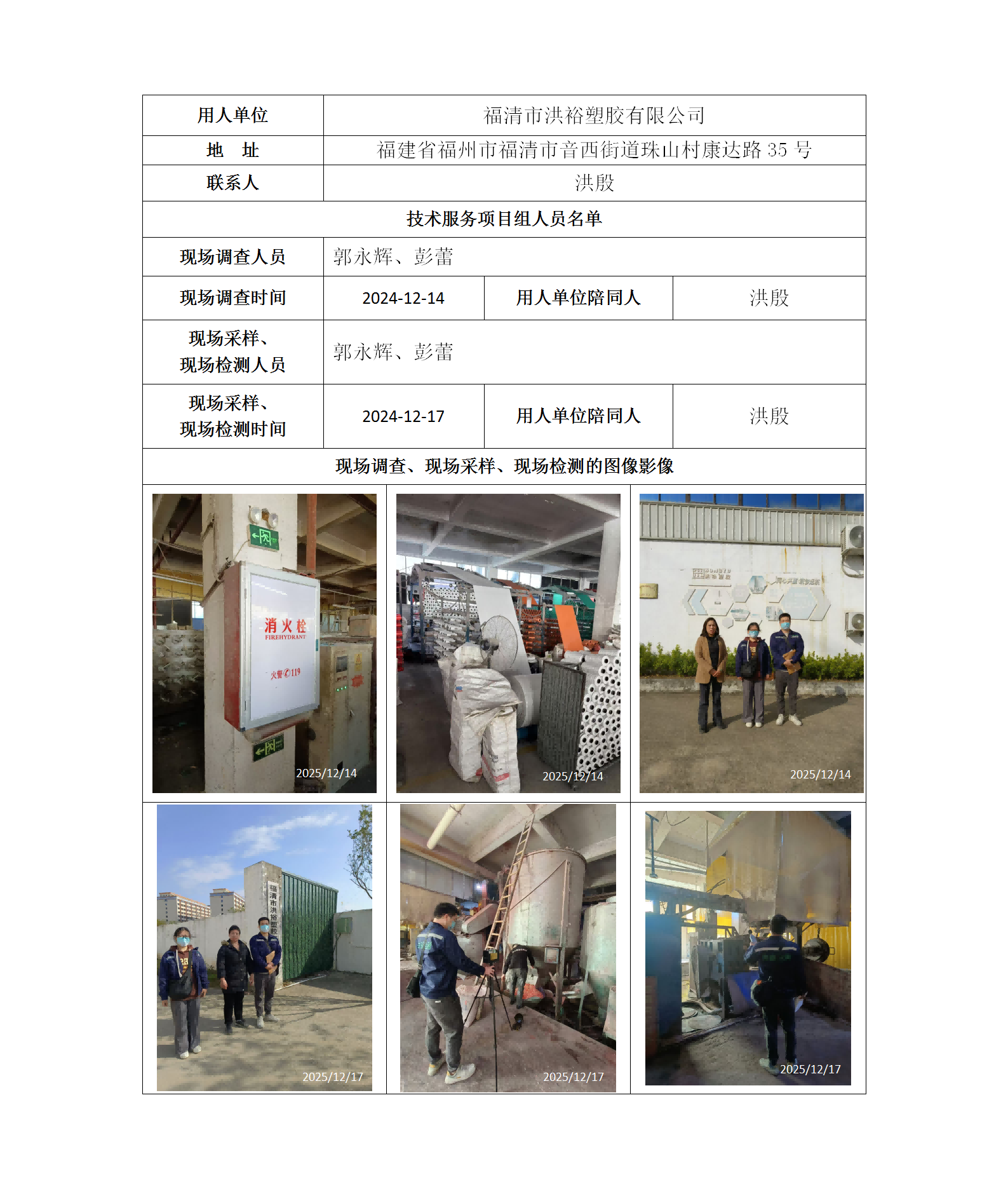 福清市洪裕塑膠有限公司-2024年工作場(chǎng)所職業(yè)病危害因素檢測(cè)