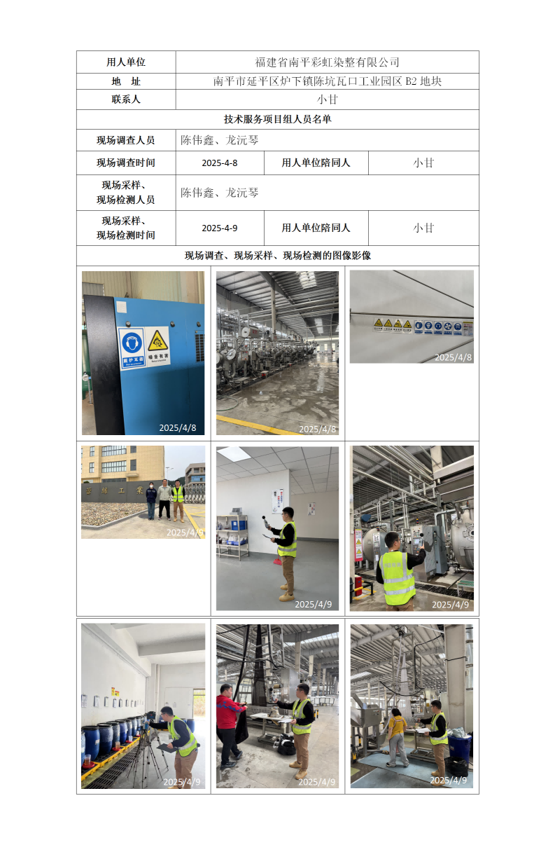 福建省南平彩虹染整有限公司-2025年工作場所職業(yè)病危害因素檢測