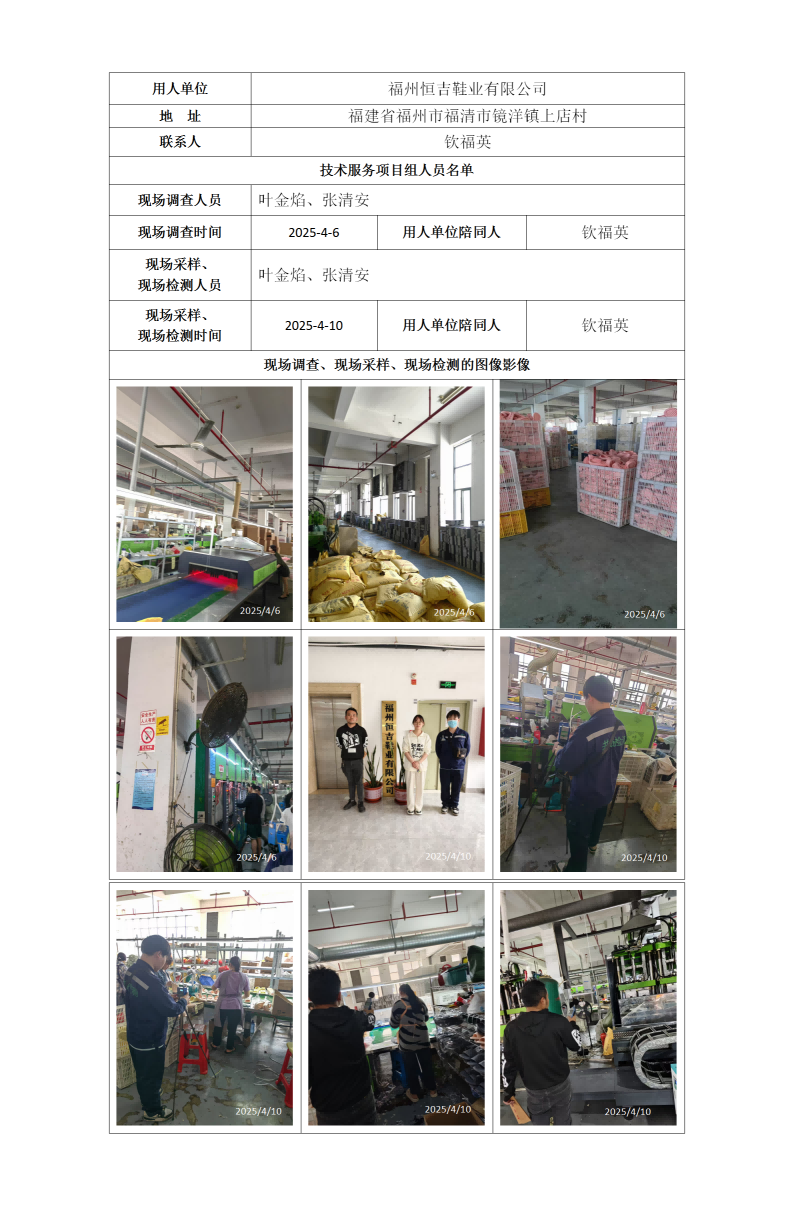 福州恒吉鞋業(yè)有限公司-2025年工作場(chǎng)所職業(yè)病危害因素檢測(cè)