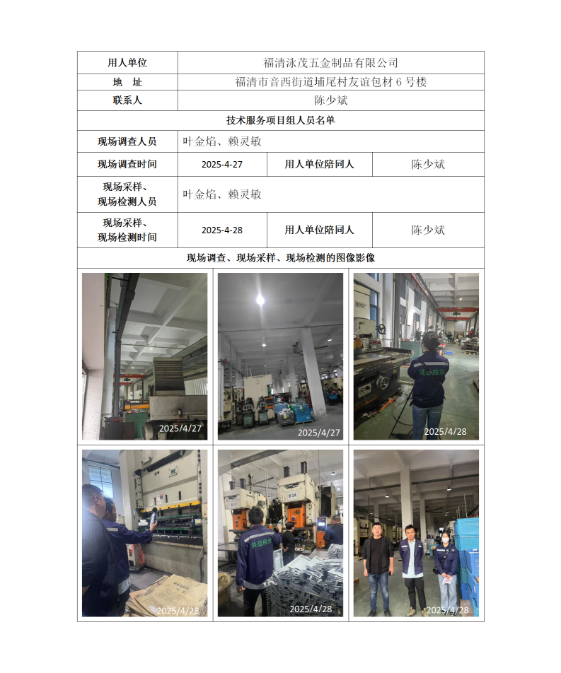 福清泳茂五金制品有限公司-2025年工作場(chǎng)所職業(yè)病危害因素檢測(cè)