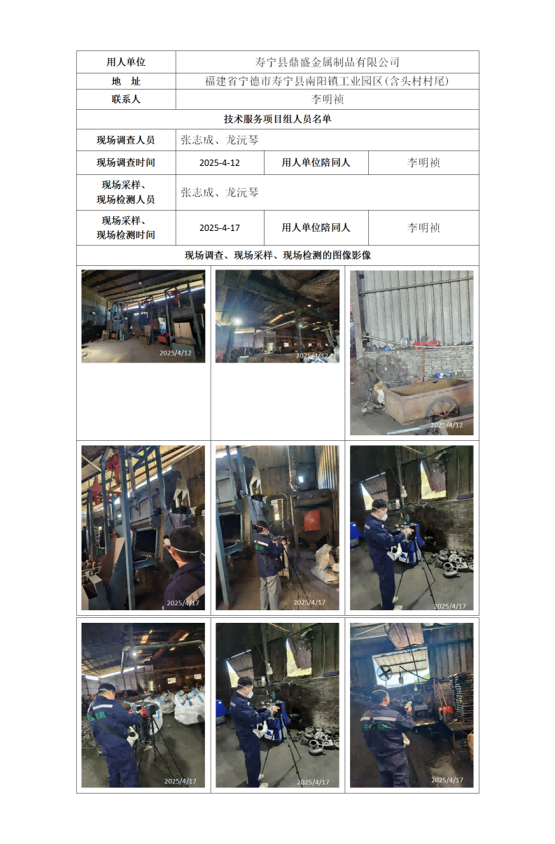 壽寧縣鼎盛金屬制品有限公司-2025年工作場所職業(yè)病危害因素檢測
