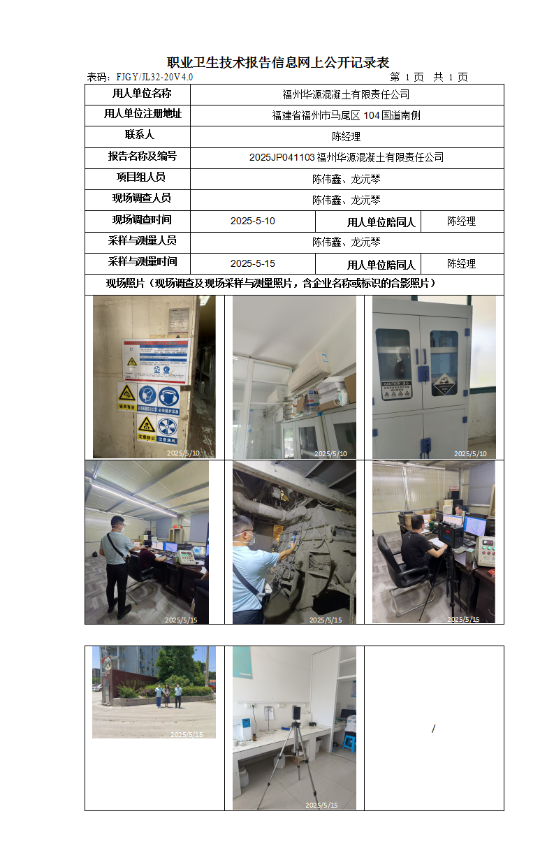 福州華源混凝土有限責(zé)任公司-2025年工作場所職業(yè)病危害因素檢測