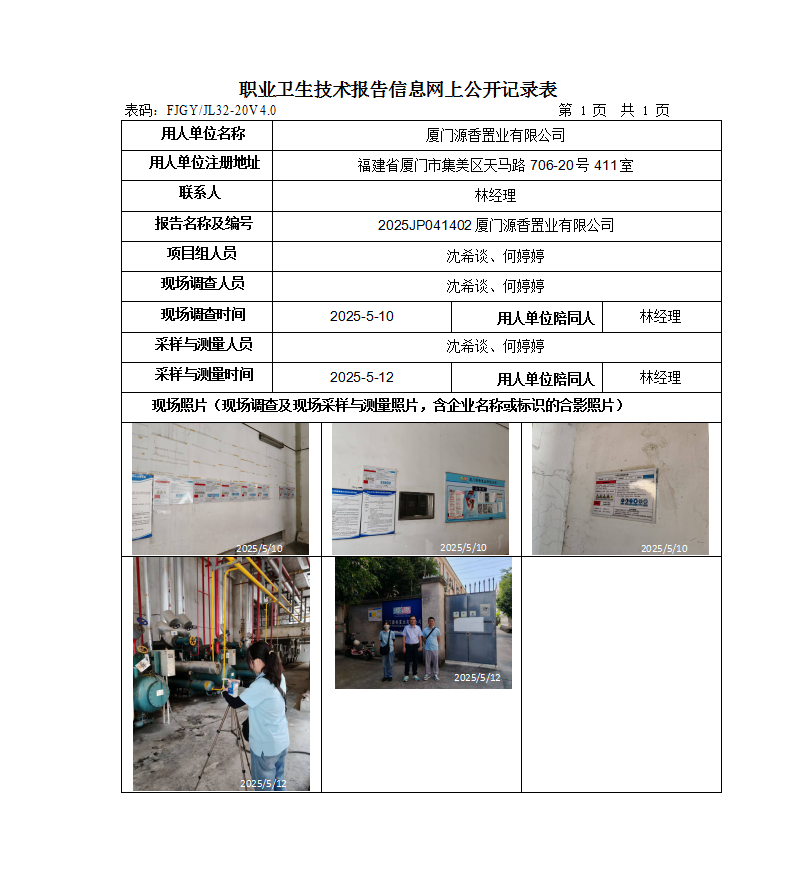 廈門源香置業(yè)有限公司-2025年工作場所職業(yè)病危害因素檢測