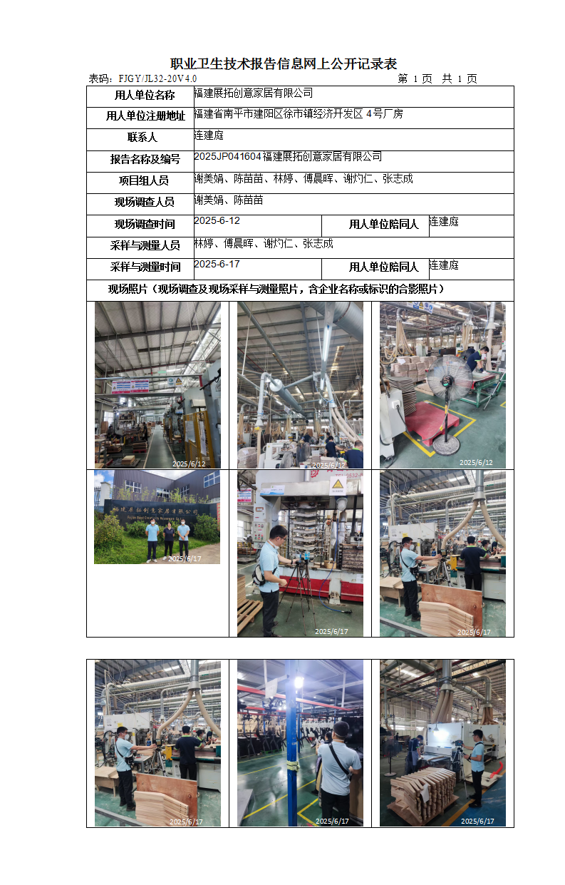福建展拓創(chuàng)意家居有限公司-2025年工作場所職業(yè)病危害因素檢測