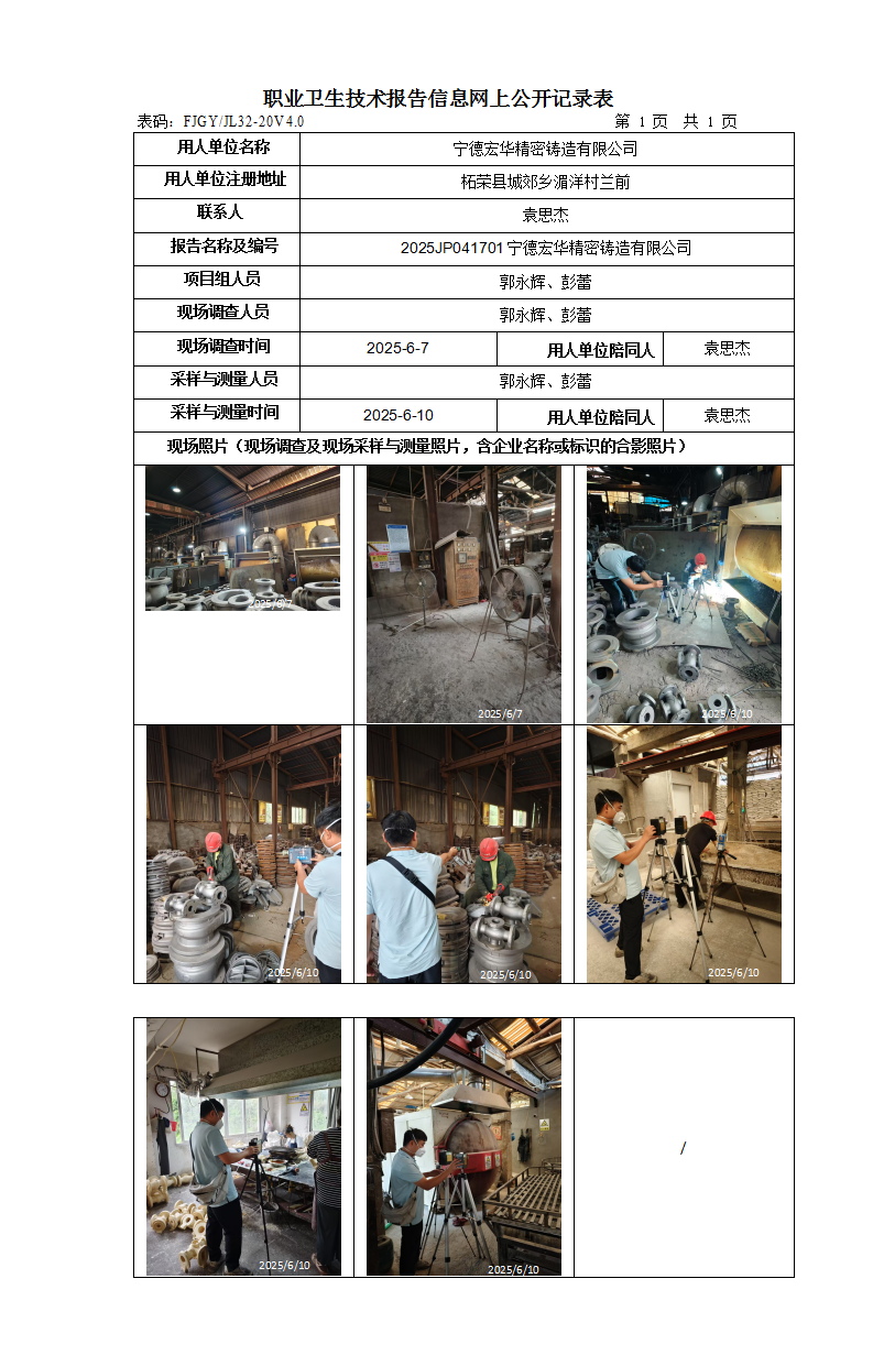 寧德宏華精密鑄造有限公司-2025年工作場所職業(yè)病危害因素檢測