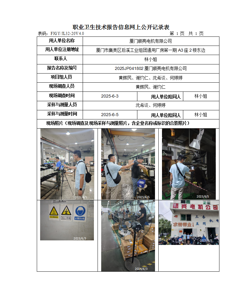 廈門順亮電機(jī)有限公司-2025年工作場所職業(yè)病危害因素檢測(cè)