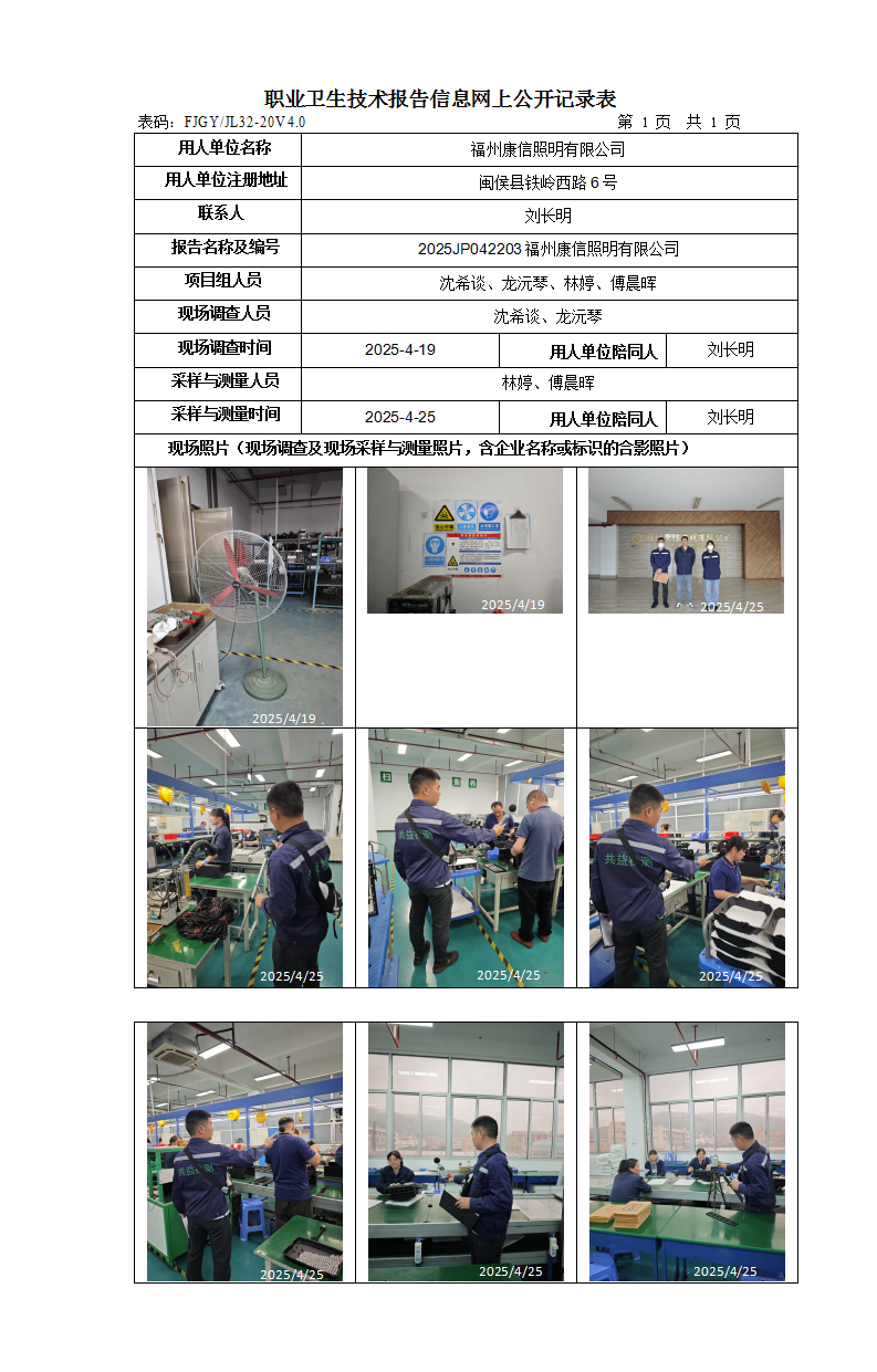 福州康信照明有限公司-2025年工作場所職業(yè)病危害因素檢測