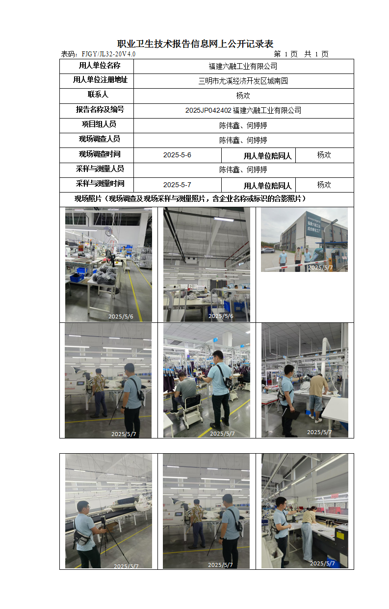 福建六融工業(yè)有限公司-2025年工作場(chǎng)所職業(yè)病危害因素檢測(cè)