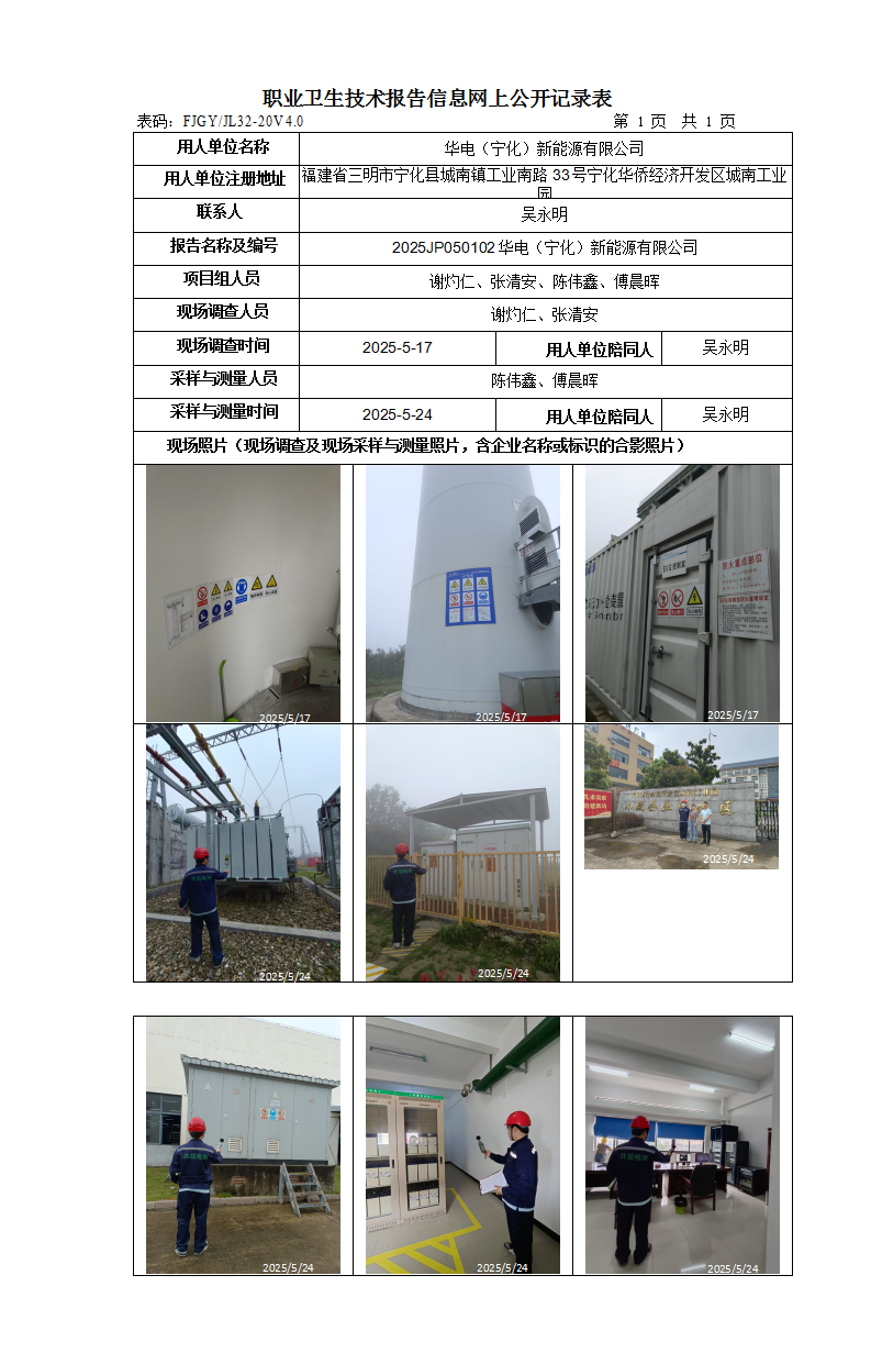 華電(寧化)新能源有限公司-2025年工作場所職業(yè)病危害因素檢測