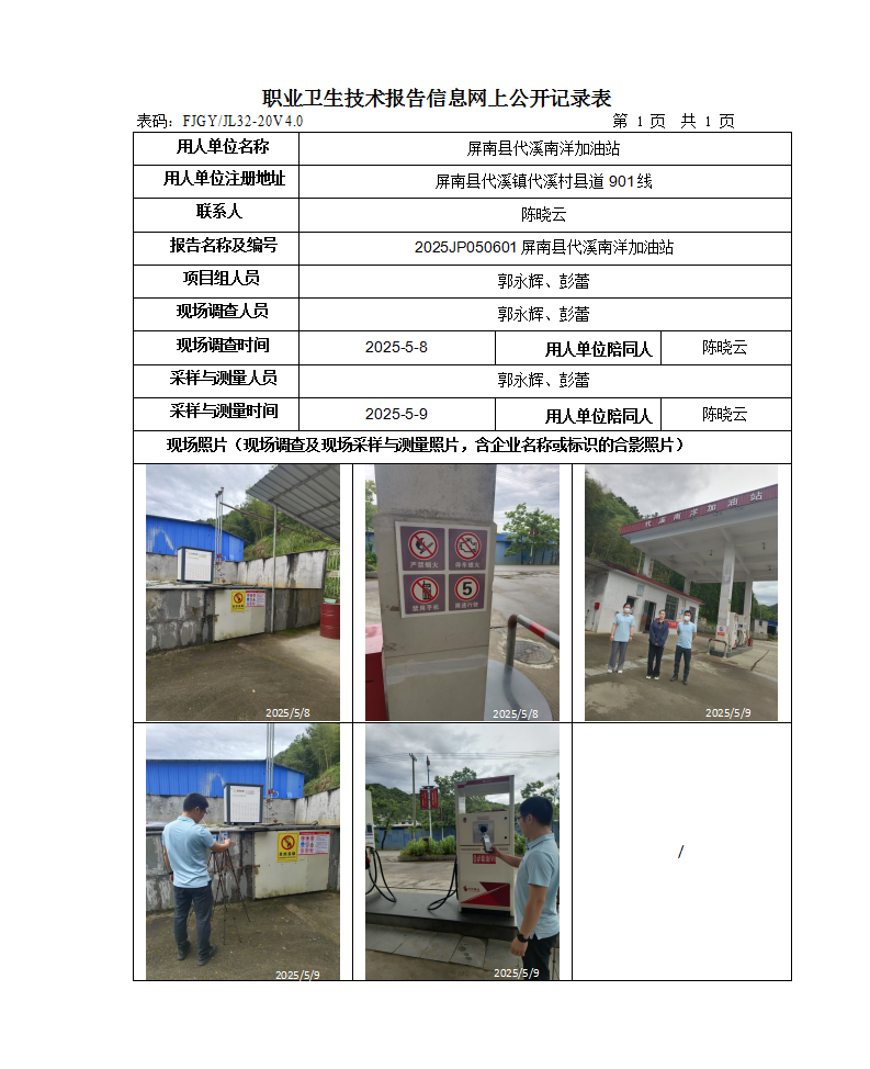 屏南縣代溪南洋加油站-2025年工作場所職業(yè)病危害因素檢測