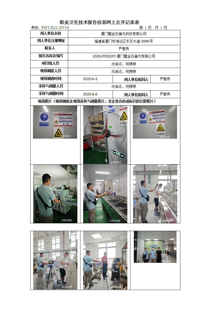 廈門(mén)鷺金石偏光有限公司-2025年工作場(chǎng)所職業(yè)病危害因素檢測(cè)