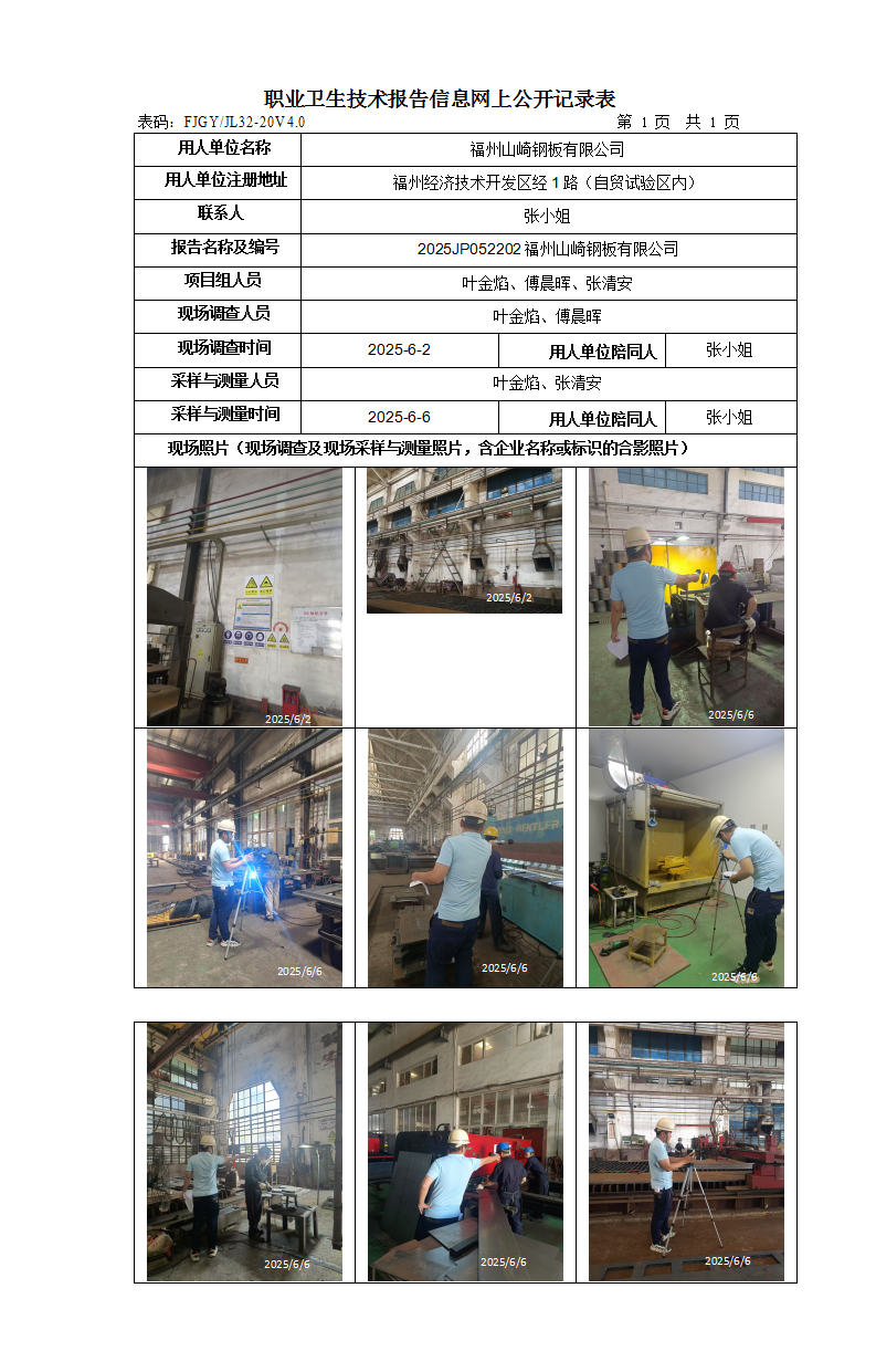 福州山崎鋼板有限公司-2025年工作場(chǎng)所職業(yè)病危害因素檢測(cè)