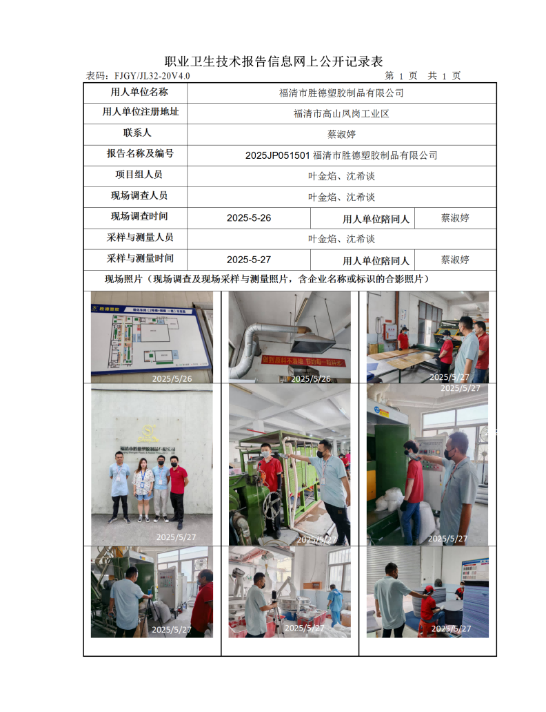 福清市勝德塑膠制品有限公司-2025年工作場所職業(yè)病危害因素檢測