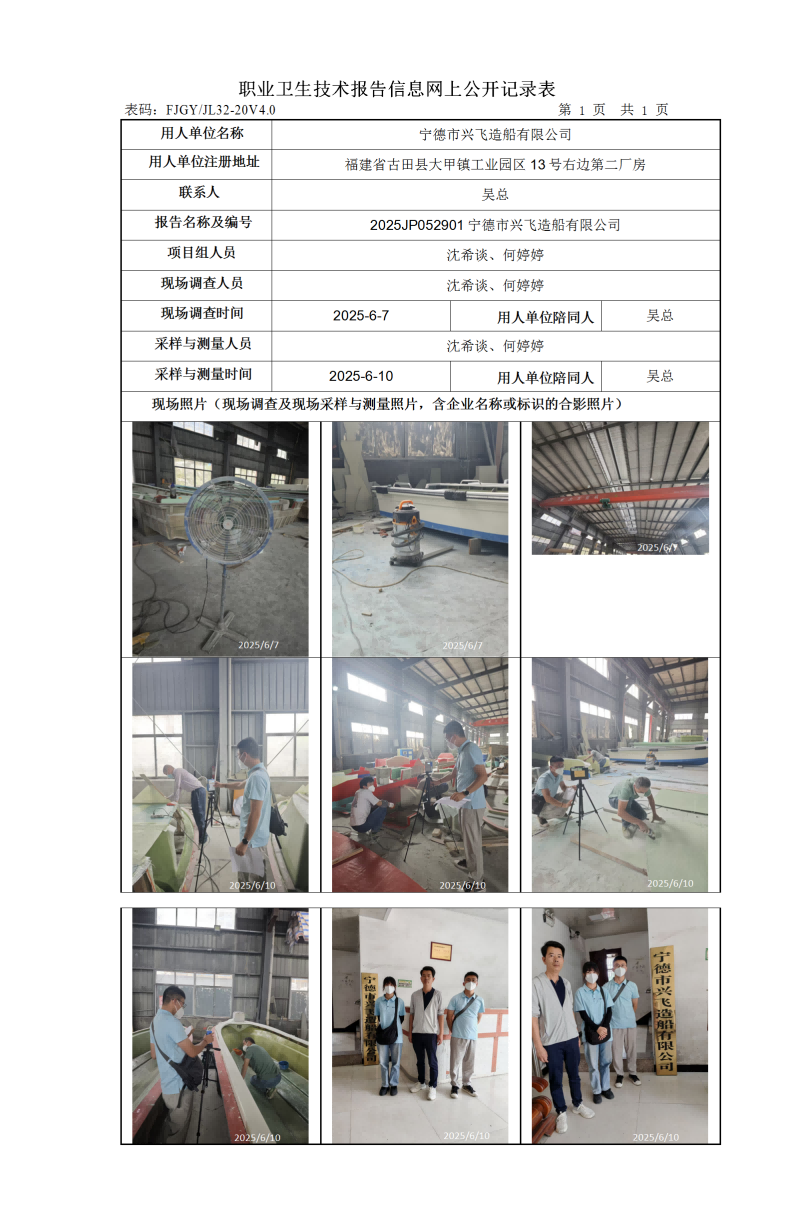 寧德市興飛造船有限公司-2025年工作場所職業(yè)病危害因素檢測