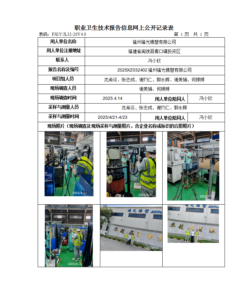 福州福光橡塑有限公司-2025年職業(yè)病危害現(xiàn)狀評(píng)價(jià)