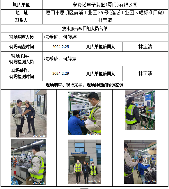 安費(fèi)諾電子裝配(廈門)有限公司-2024年工作場所職業(yè)病危害因素檢測