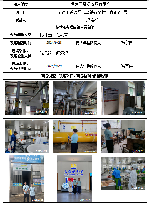 福建三都澳食品有限公司-2024年工作場所職業(yè)病危害因素檢測