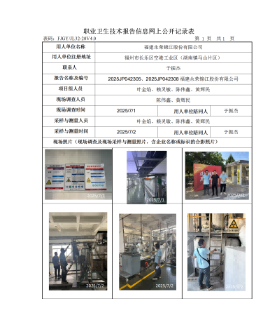 福建永榮錦江股份有限公司-2025年工作場所職業(yè)病危害因素檢測