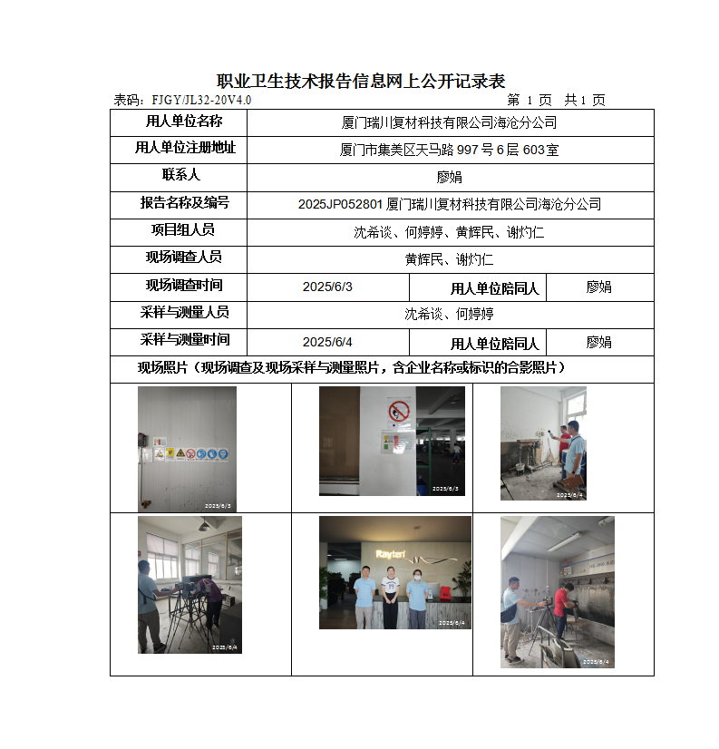 廈門瑞川復(fù)材科技有限公司海滄分公司-2025年工作場所職業(yè)病危害因素檢測