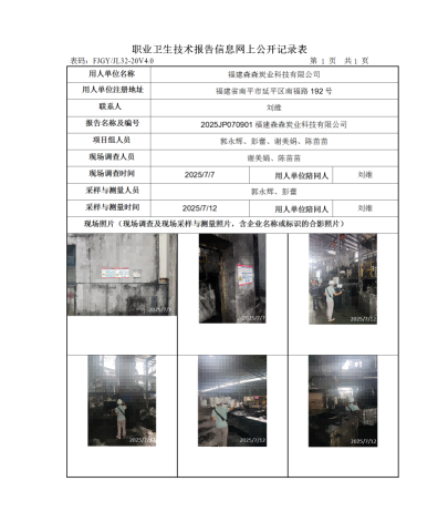 福建森森炭業(yè)科技有限公司-2025年工作場所職業(yè)病危害因素檢測