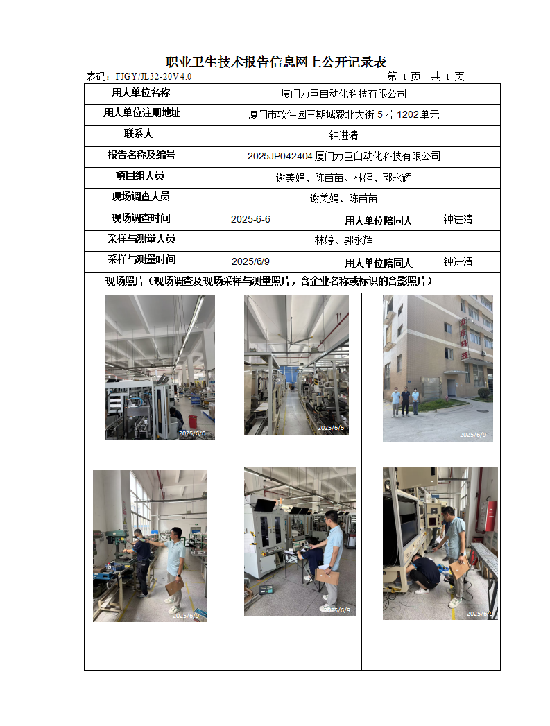 廈門(mén)力巨自動(dòng)化科技有限公司-2025年工作場(chǎng)所職業(yè)病危害因素檢測(cè)