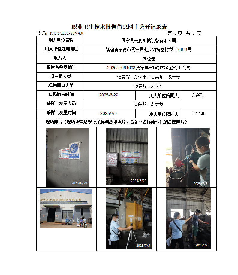 周寧縣宏騰機械設備有限公司-2025年工作場所職業(yè)病危害因素檢測