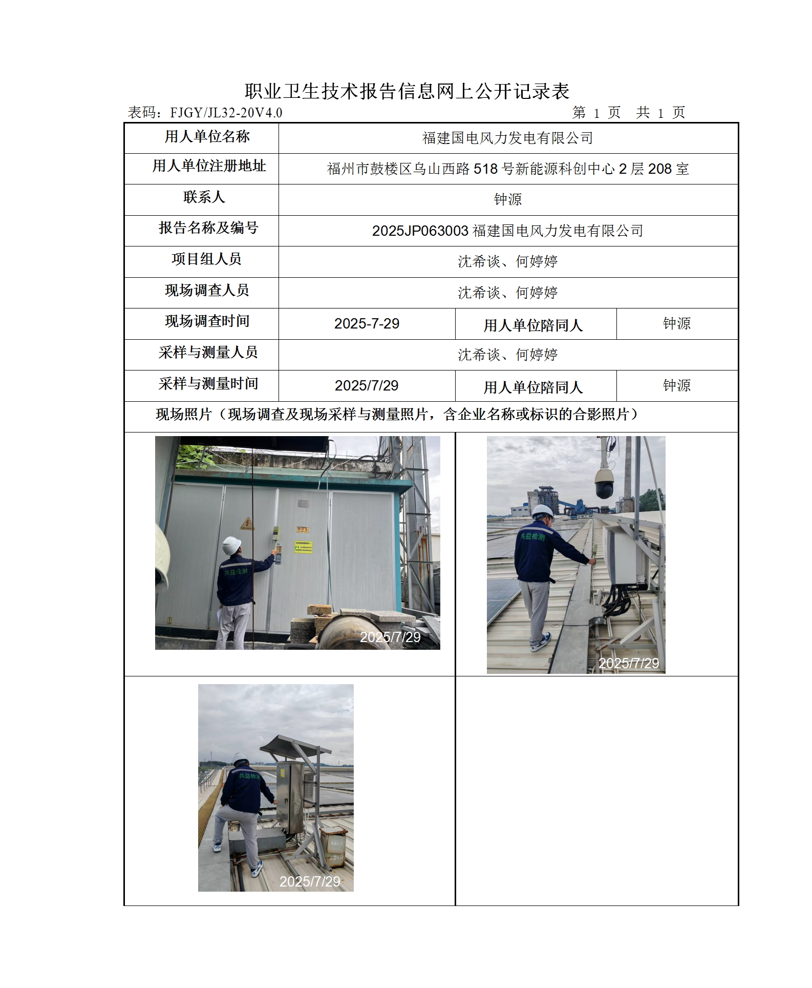 福建國電風力發(fā)電有限公司-2025年工作場所職業(yè)病危害因素檢測