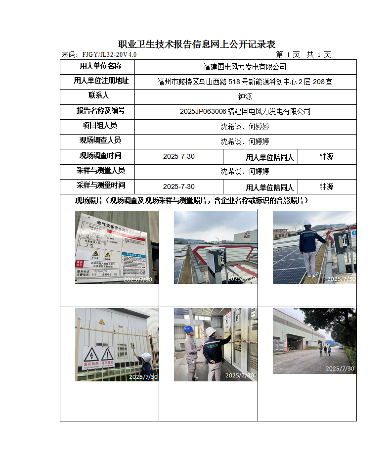 福建國(guó)電風(fēng)力發(fā)電有限公司-2025年工作場(chǎng)所職業(yè)病危害因素檢測(cè)