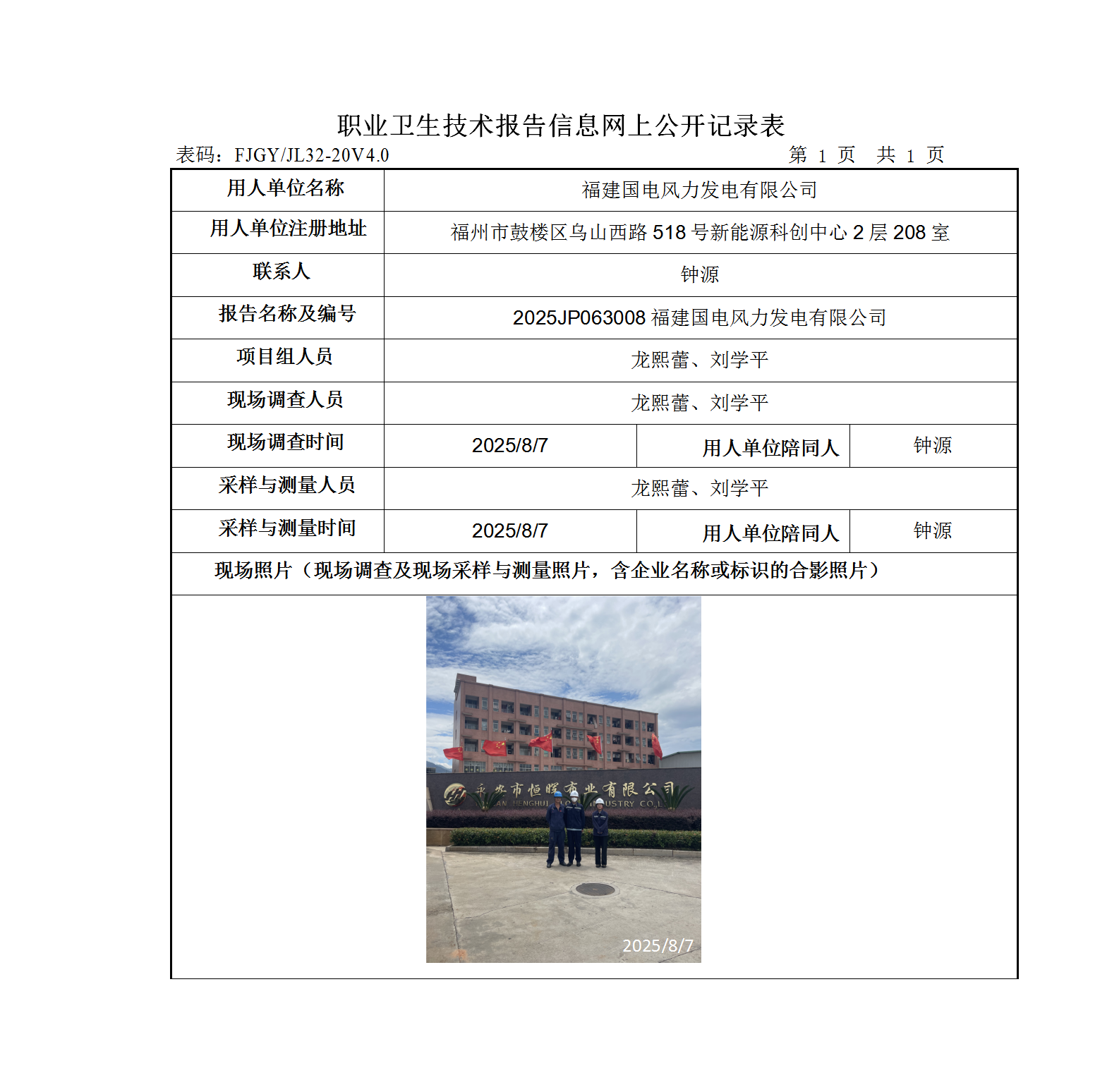 福建國電風(fēng)力發(fā)電有限公司-2025年工作場所職業(yè)病危害因素檢測