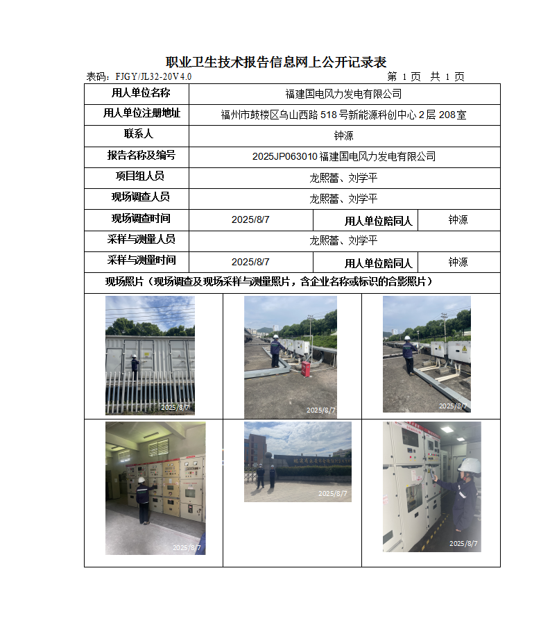 福建國電風(fēng)力發(fā)電有限公司-2025年工作場所職業(yè)病危害因素檢測